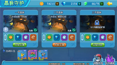 2. 晶脉守护属于资源获取玩法,玩家通过开采晶脉获得培养材料,但需注意防范其他训练师的抢夺,务必派遣强力精灵进行守护。