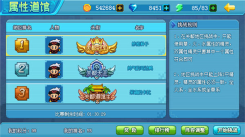 4. 属性道馆挑战要求玩家使用特定属性的精灵进行对战,胜利可获得积分并参与排名角逐,最终目标是夺取关都冠军的荣誉。