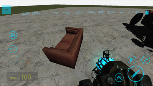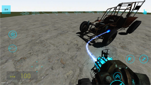 4、默认工具可移动物体,选中目标后长按开火键锁定,保持按压并滑动开火按钮即可拖动。
