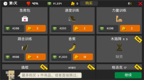 1、游戏开始前可在商店购置装备,初始金币有限,建议优先选择踢击训练、香蕉皮与速度训练,这些物品能为前期战斗提供有效帮助。