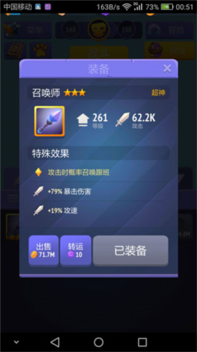 5、装备在每个关卡都有几率掉落传奇品质,部分关卡有特定装备产出。一般无需过于留恋当前装备,战力提升后获得的装备等级更高。