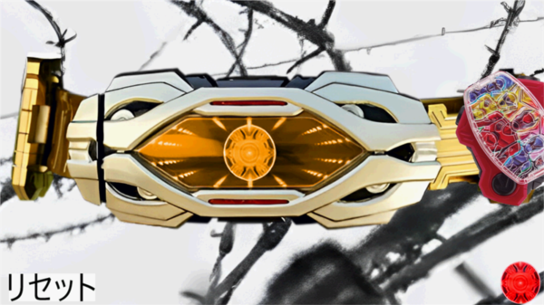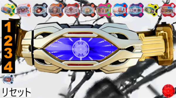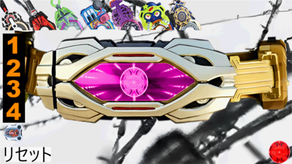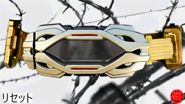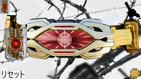 3、在游戏界面中,你会看到一个极为逼真的假面骑士变身器,以及左下角的日文标识和右下角的红色按钮。