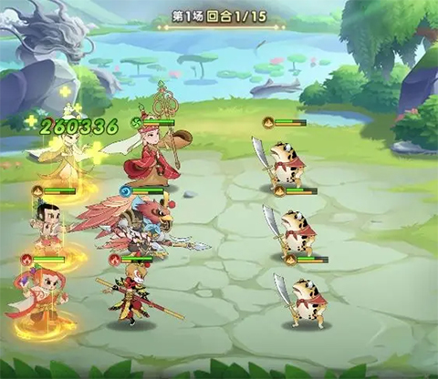 阵容详情:小金刚能打出极高的群体伤害;孙悟空具备独特的连击机制,两者配合可快速压低对手血量,再由觉醒四娃完成高额斩杀;普贤菩萨能为后排友军提供可观的攻击与暴击加成;金翅大鹏在回合初期可承受大量伤害,确保前排稳定;唐三藏既能造成群体伤害,也能为队友施加保护效果。