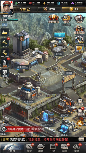 对玩家而言,提升战斗力始终是核心目标。战斗力的增长主要依赖以下几个层面:1 部队规模;2 兵种等级;3 统帅能力;4 基地繁荣度;5 军官培养;6 军衔晋升;7 航母发展。