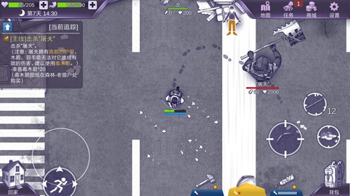 2、独特的写实画风运用线条勾勒背景,板房与木屋等场景细致描绘出末日生活的氛围;你需要在废墟中寻找食物与水源,同时小心避开游荡的可怕丧尸。