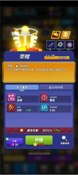 ① 需要高点数炮塔时,可用荣耀提升克隆点数,再复制同点数炮塔,避免合成出不需要的类型;