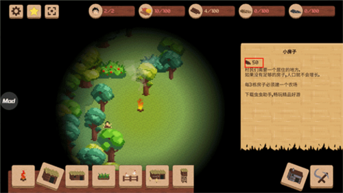 6、材料充足后方可建造房屋等设施,逐步发展领地,并向更广阔的区域进行探索。