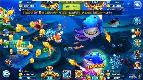 3、捕鱼时注意屏幕两侧的奖励提示,及时点击可获取更多金币。