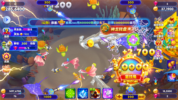 1、高爆率设定,配合丰富奖励、成就任务与频繁活动,让每日捕鱼无压力。