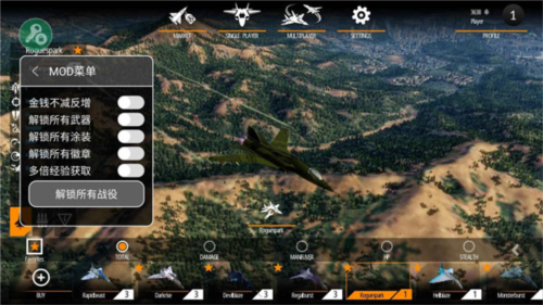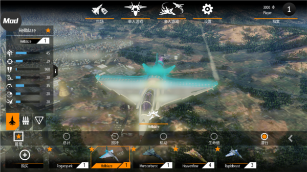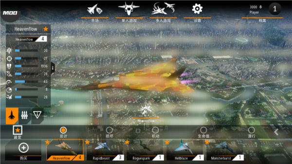 1、提供多种特性与装备各异的战机供玩家选择;