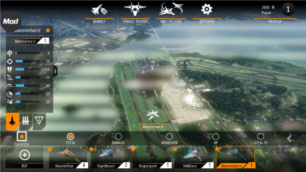 游戏中收录了超过四十架喷气式飞机,地图涵盖超过四十亿平方英尺的陆地与海洋。玩家将投身于一系列高难度任务,在沙漠、海洋、都市及山峦上空展开激战;高超的加速技巧、战术布局与机动规避能力都将受到终极考验。进入驾驶舱,准备起飞;你可以解锁并升级上百种飞机武器与防御组件,喷涂专属图案与徽章,打造独一无二的战机外观,最终主宰整片天空。