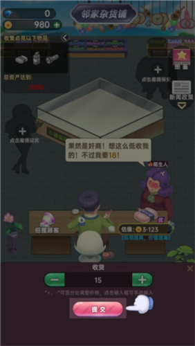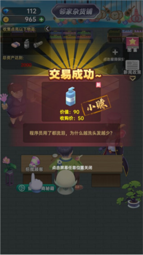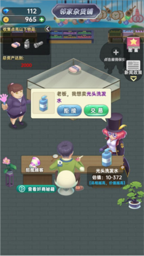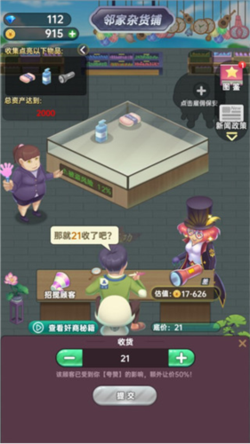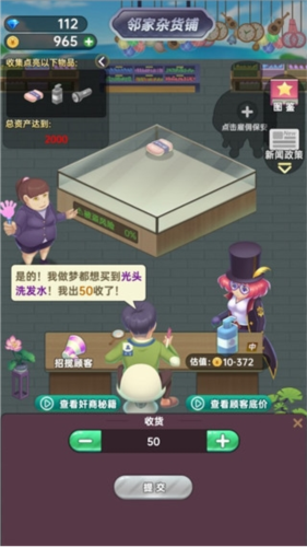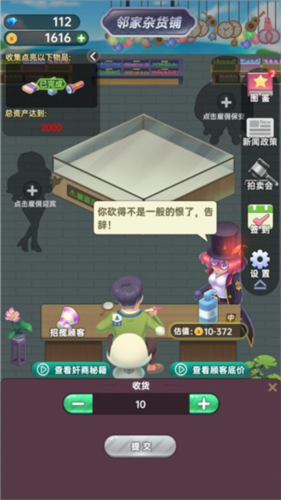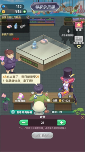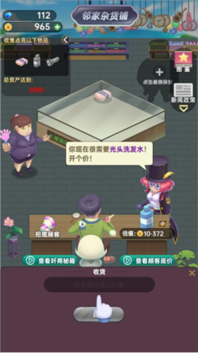 2、极致砍价追求利润,收集商品点亮图鉴,经营店铺创造财富;关注新闻与政策动向,它们会影响市场走势。