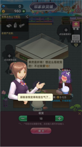 1、分析商品种类、评估价格、观察品相,同时判断顾客类型与心理状态,通过讨价还价实现低买高卖,积累资金;完成各类挑战目标,逐步解锁更多店铺。
