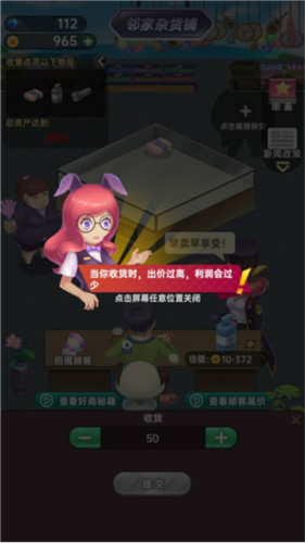 这款游戏让玩家体验商人买卖的趣味过程,特别版本经过优化,移除了广告干扰,每日可领取十次金币奖励,保安与迎宾自动保持最高等级,还能不限次数寻找优质顾客并查看他们的心理底价,让你完全沉浸在经营的乐趣中。