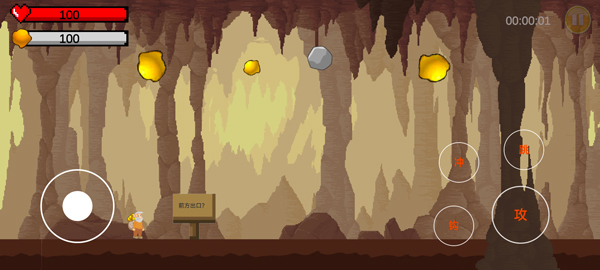 3、玩家需要操控角色发射钩索,抓取场景中的金矿;