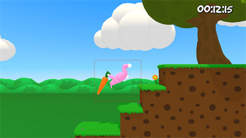 6、控制兔子滚到萝卜旁,按下跳跃键即抓取键;若兔子抓住萝卜根部或尾部,即可将其抓起,长按按键可保持抓取状态,之后可自由翻滚移动。