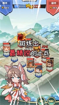 1、卡通Q版风格画面,在不同主题场景中作战,逐步壮大的队伍易于带领;