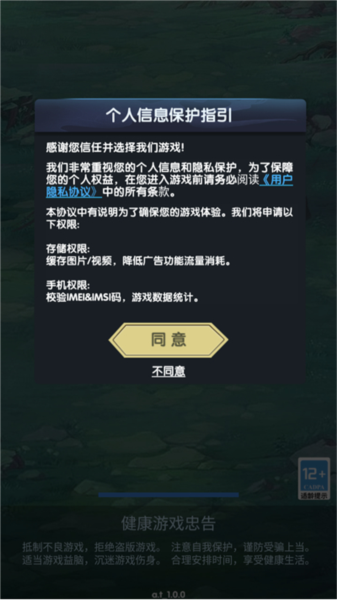 1、首先打开已下载的游戏,进入后会显示用户协议,点击同意即可进入;