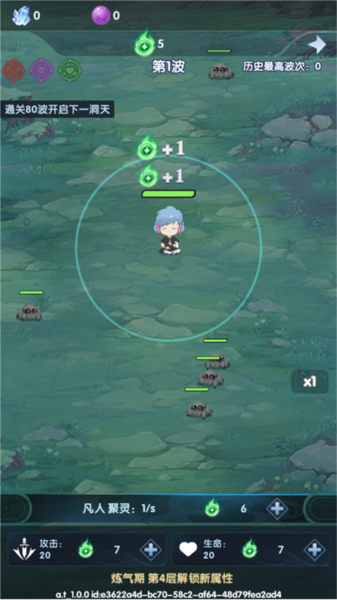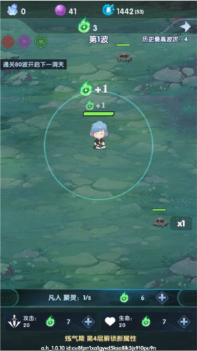 2、进入游戏后角色会自动攻击出现的敌人,消灭敌人后可获得灵气;