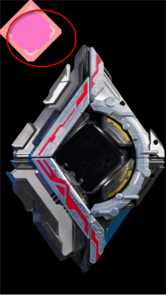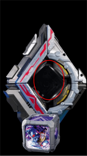 6、按下侧边蓝色按钮触发变身音效;打开觉醒器中间凹槽放入魔方,魔方会伴随光效。