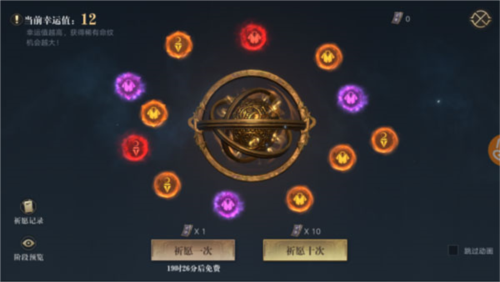 祈愿是获取高阶命纹材料的主要方式;每次祈愿消耗祈愿符并增加幸运值,幸运值提升获得极品结晶的概率,获取后幸运值清零。