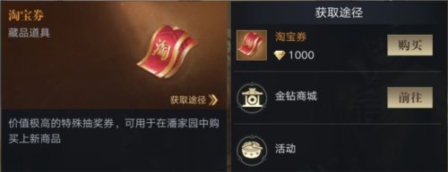 淘沙需要消耗淘宝券,淘宝券可在金钻商城购买,也能通过参与各类活动获取。