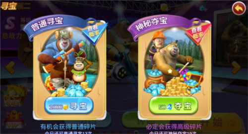 寻宝分为两种形式:普通寻宝消耗金币,可能获得金币、普通机甲碎片或少量钻石;神秘夺宝消耗钻石,进行十次夺宝必定产出高级机甲碎片,并有几率获得大量金币与钻石。