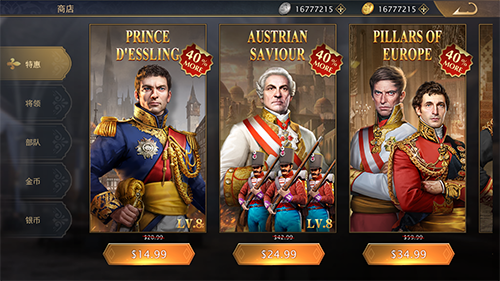 5、游戏以欧洲战争历史为背景,重现大量经典战役,你是否能扭转历史?培养丰富兵种,招募更多勇士成为士兵,前往各国掠夺资源。