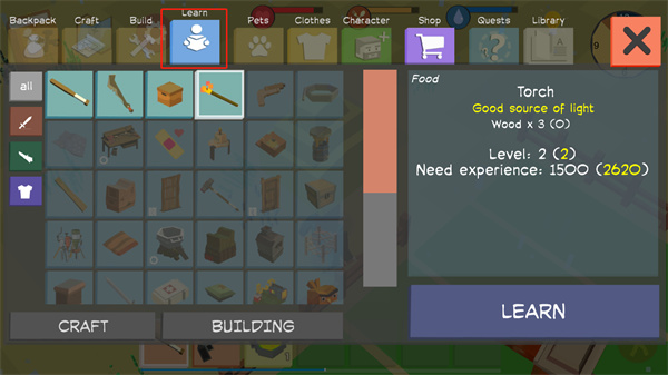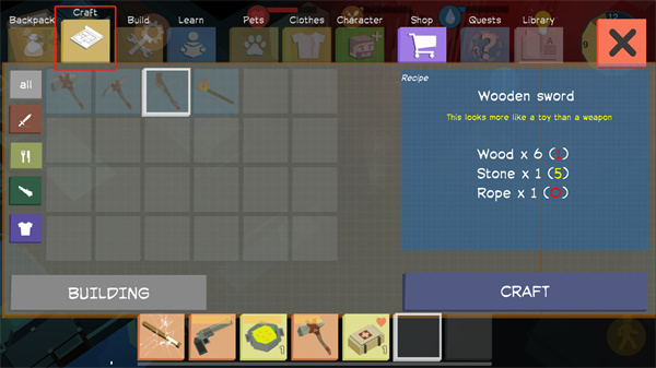 8、点击Craft制作道具,制作前需收集齐所需材料;