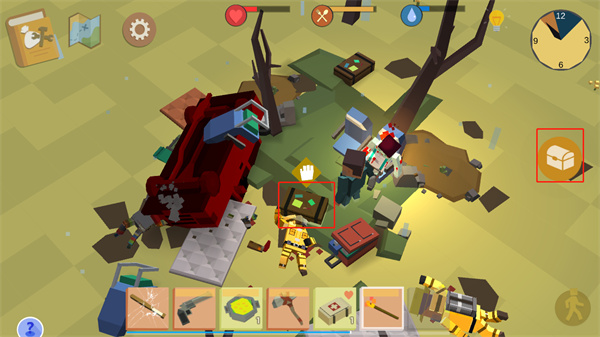 4、靠近可拾取道具时,点击右侧手掌按钮进行收集;