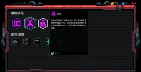 中枢模组与周围模组提供不同方向的强化,例如超热模组可提升输出但易过热,建议根据自身战斗风格选择。解锁改造与装备能增加局内可获取的强力选项,但前期资源紧张时建议优先投资生存向项目。