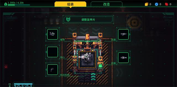 机甲依靠血量、装甲片与电力驱动,不同资源作用各异。电力可自动恢复,用于技能释放;血量和装甲片则代表生存能力,初期无法自然回复,但可在装配台消耗黄色素材进行补充。