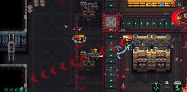 画面以像素风格为基底,融入了大量未来科技元素,构建出沉浸感强烈的赛博场景。独特的美术设计让战场环境细节丰富,视觉表现鲜明有力。