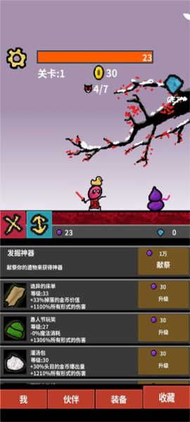 3、等级成长上,当前等级减去10级后,每提升20级攻击力翻倍,例如30级、50级均为翻倍节点;随着主角等级提升,暴击率似乎也会增长,可通过神器“圣匣净饰”进一步强化暴击属性。