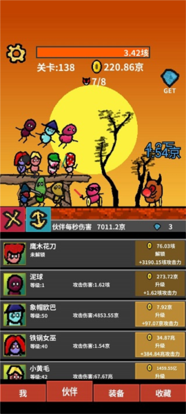 首先是伙伴流,该流派依赖伙伴的高基础伤害,下限稳定但上限突出;由于攻击速度限制,效率一般,更适合藏品积累初期或点击流后期辅助推进,当前版本不作为主力推荐;装备属性优先选择全体伙伴攻击,其次为远程或近战伙伴攻击,宝藏金币属性可酌情使用,暴击与爆伤对伙伴无效。