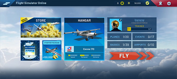 2、进入主大厅界面,点击“飞行”按钮开始游戏。