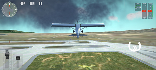 8、当速度达到后,轻拉右下角的操纵杆使机头抬起;离地后你便可以自由控制飞机的飞行姿态与方向。