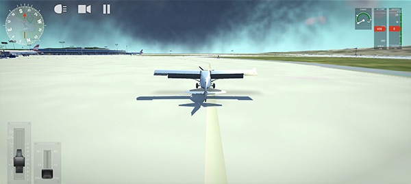 7、首先启动飞机引擎,然后平稳推动油门加速滑跑,使用屏幕左下侧的两个滑杆即可完成。