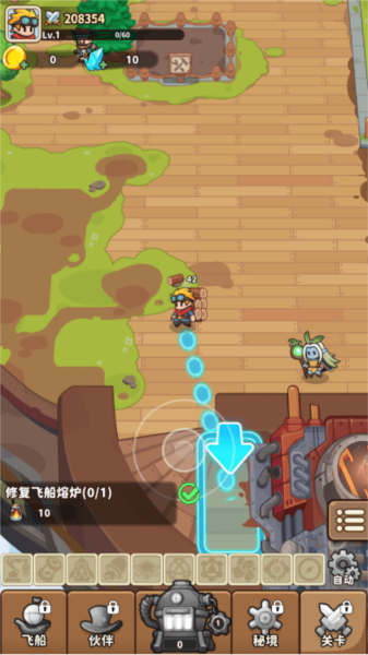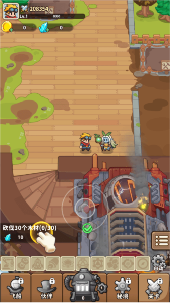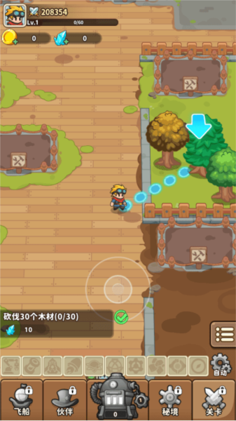 3、资源收集:通过虚拟摇杆操控角色移动,收集各类资源用于建造与升级天空岛屿;