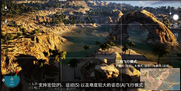 4、开启A模式后无人机将自动保持姿态稳定,按下U键可隐藏游戏界面,便于在空中悬停欣赏优美景色。