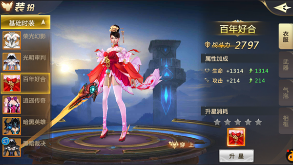 3.时装可通过道具进行升星操作,升星提供额外属性。