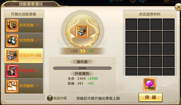 b)战船培养界面可消耗进阶丹进行进阶操作。