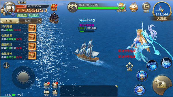 b)进入伟大航路后,玩家形象与技能将替换为战船形态,属性完全采用战船属性。