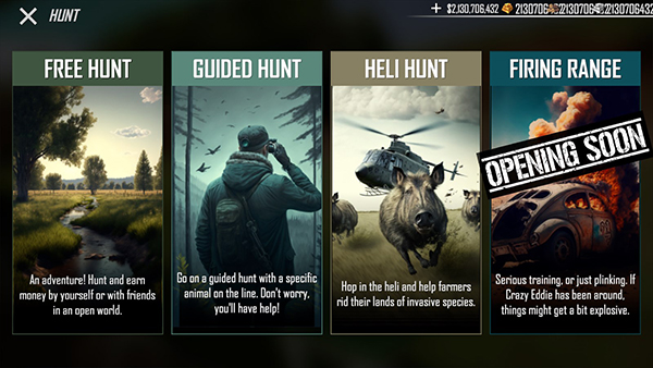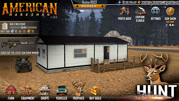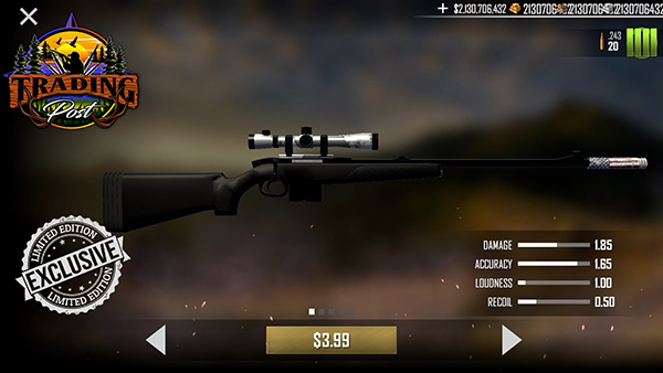 4、武器丰富:装备库包含猎枪、手枪、弓箭等多种类型,可针对不同狩猎目标进行挑选。
