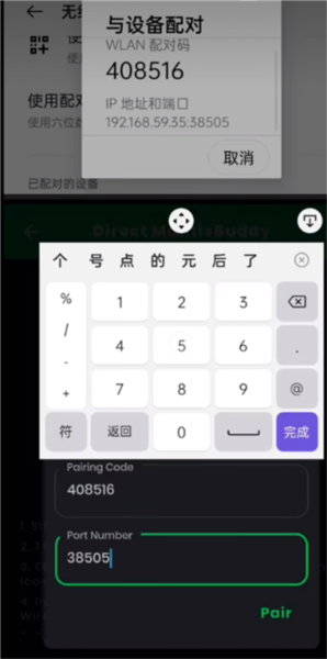 9、在弹出的窗口中输入从无线调试获取的配对码。