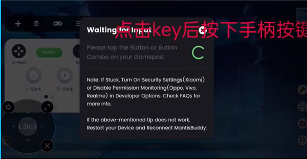 13、进入游戏后,点击屏幕上需要映射的虚拟摇杆区域。