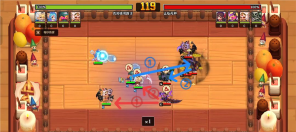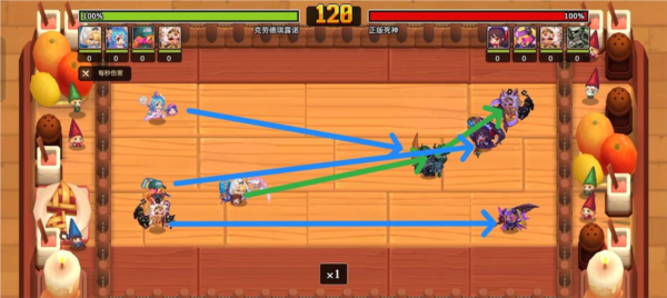 若连锁未击败全部前排,公主第二个大招可中断土盾连锁,为己方创造优势。