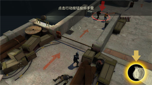 5、面对大量敌人时,可点击右侧炸弹图标,瞄准后投掷手雷;之后便可自由探索与射击。