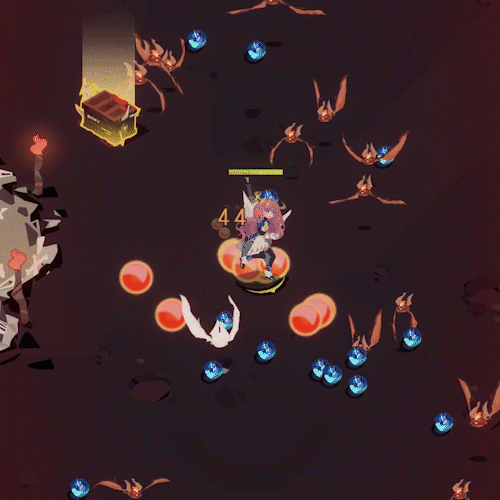 7、击败强敌,拾取其掉落的宝箱,便可在最多三种随机武器中选择一种。