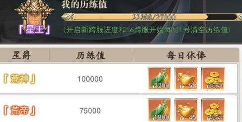 7、八荒星图:在八荒星图的星图历练中,每日可根据星爵等级领取铜币,爵位越高,奖励越丰厚。